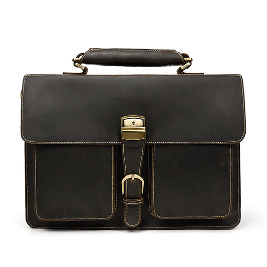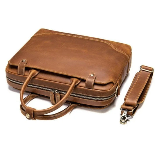 Elegant Classic Men's Leather Briefcase | 14 Inch Laptop Bag