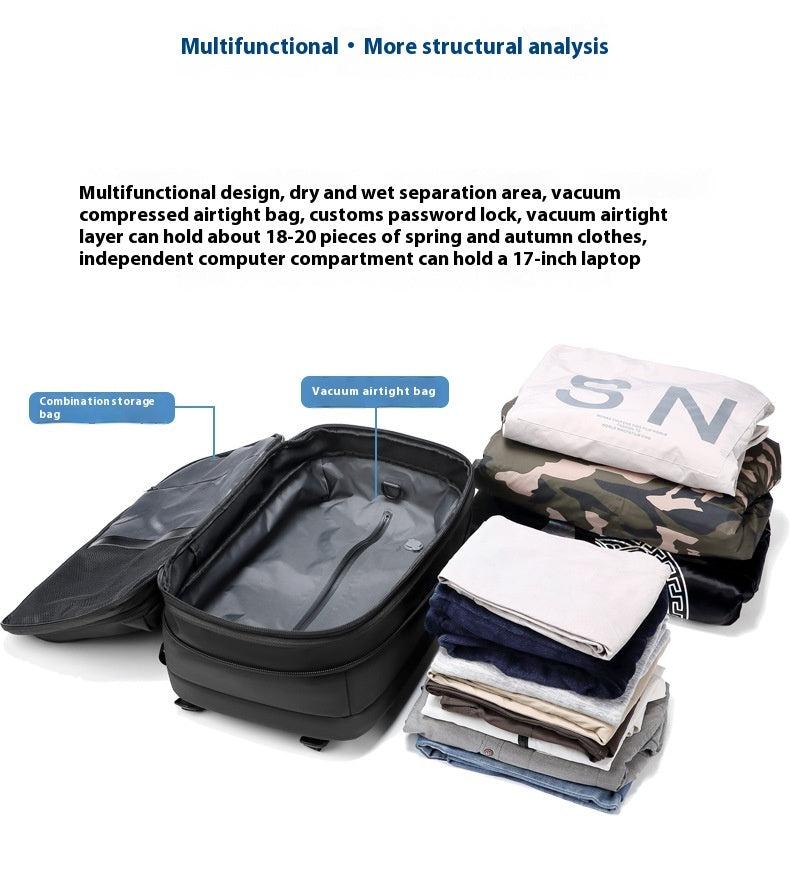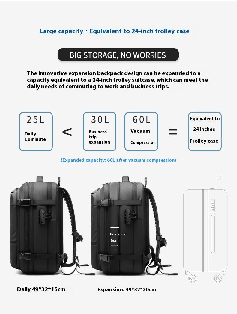 The Voyager Pro doesn’t just carry your essentials; it optimizes space like a pro. With a unique vacuum compression feature, you can maximize the internal capacity, ensuring that your clothes and gear fit perfectly without the bulk. Whether you're packing light or need to bring along more, the adjustable capacity expands to meet your needs.
